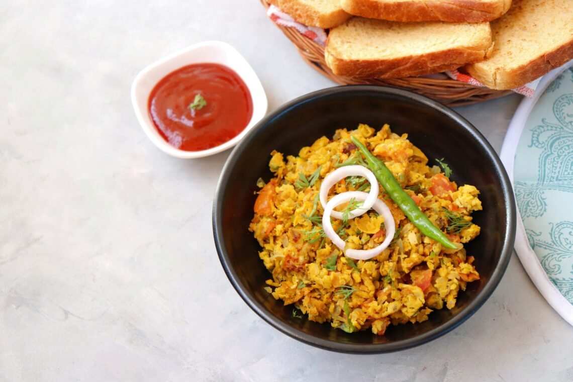 Egg bhurji is quick, tasty, and protein-rich. Cook onions, tomatoes, green chilies, and spices, then add beaten eggs and scramble. It pairs well with chapati or bread and is ready in just minutes.